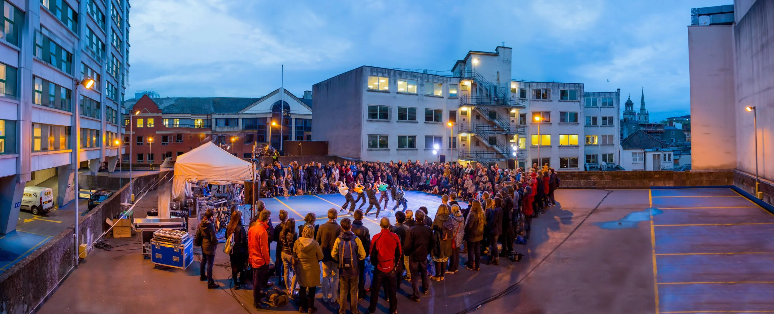 Night. We find a space in the margins of the city in which to gather: to start an ad hoc ceremony, to stamp our feet and shake our limbs, to dance in the face of an ending.